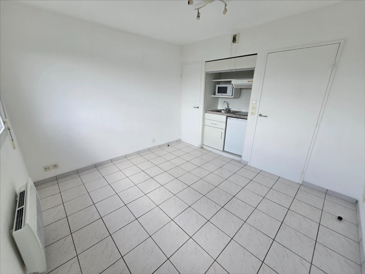 Entrée avec placards, salle d'eau avec WC, pièce de vie avec coin kitchenette et placard avec chauffe eau et emplacement pour machine à laver.